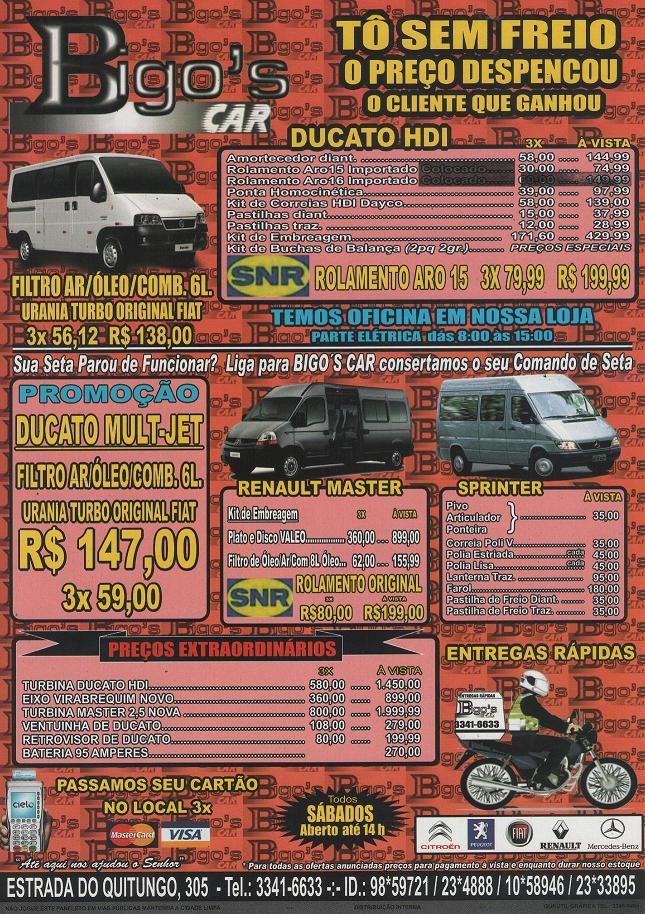 Aqui no Bigo's Car Auto Center nós lidamos com serviços automotivos em geral, mas somos especializados em vans e utilitários. Nós gostaríamos de convidá-lo a conhecer alguns de nossos serviços expostos neste website. Nossa equipe de profissionais está sempre a sua disposição, visto que acreditamos que a chave para o sucesso é o constante aprimoramento de nossos serviços para melhor servir os nossos clientes. A maior prova de que esta filosofia empresarial é correta, é o crescente número de clientes que o Bigo's Car Auto Center tem ganhado.